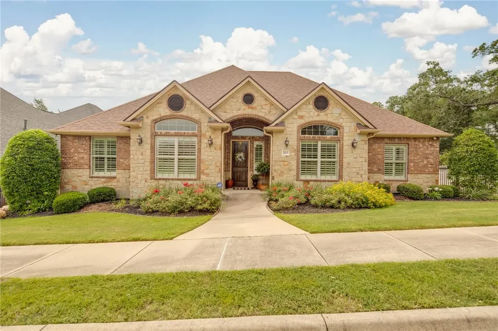 Come tour this beautiful home with 4 bedroom, 2 full and 1 half bath with 2 dining areas. Lots of custom of wood work in this functional open floor plan. Hardwood floors throughout and tile in wet areas. Plantation shutters throughout! Primary bathroom has huge shower with separate his/her vanities. Yard has aluminum fencing on the front and back and privacy on the sides. The kitchen has a gas range, vent hood, double convection ovens and built in wine cooler in the island. The spacious back porch is perfect of entertaining with a wood burning fireplace, an outdoor kitchen, and a separate outdoor gas fire pit. The rear entry garage is located off an alleyway. Home has foamed insulation in the rafters and has a multi-stage HVAC system. Neighborhood has lots of concrete walking trails and picnic areas. Convenient to Texas A&M University Main Campus, TAMU Health Science Center, TAMU/Blinn Rellis Campus and Tradition’s Golf. Hurry, this one won’t last long!