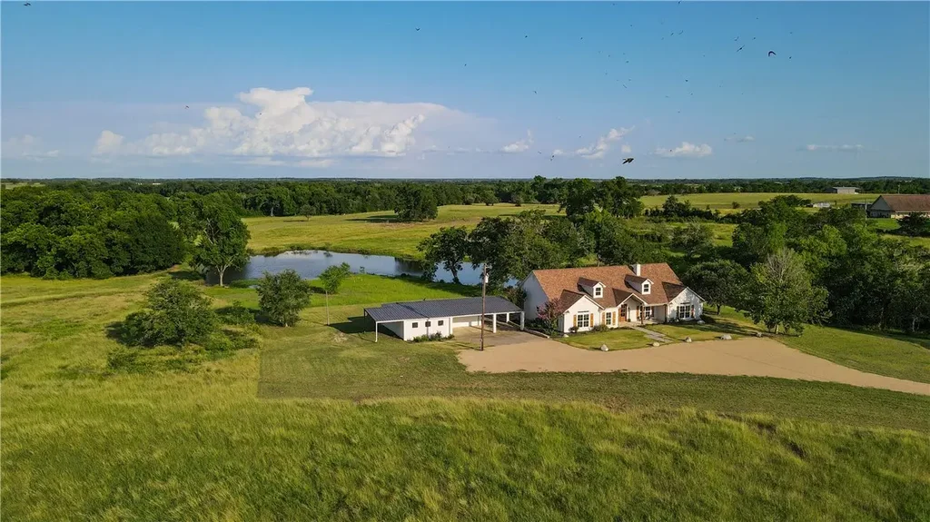 Professionally designed and meticulously updated in 2024 - Both the interior and exterior of the home will assure you the details have been taken care of with your first step onto the property! The 3 bedroom 2 bath country home is stunning and sits on just over 25 acres in Burleson County - minutes to downtown Caldwell and an easy commute to Austin/Bastrop area and Bryan/College Station. INSIDE: There is elegance with modern country style around every corner. Both the dining room and kitchen enjoy breathtaking views of the pond and rolling wooded acreage behind the home. Appliances, fixtures, stone accents, wood grained tile flooring, and hardware throughout the home complement one another and offer a feeling of elegance with sought after comforts. OUTSIDE: The shop/storage space has been designed to complement the outside of the home with strategically placed designer windows and upgraded board and batten exterior. Also to be appreciated is the large porch that joins the home and shop with the right touches of natural stone and landscaping - a true back yard escape to the country! The acreage offers rolling terrain, a shaded wooded backdrop, two ponds, perimeter fencing and AG valuation in place. This home is the FULL PACKAGE - country elegance with room for everyone!