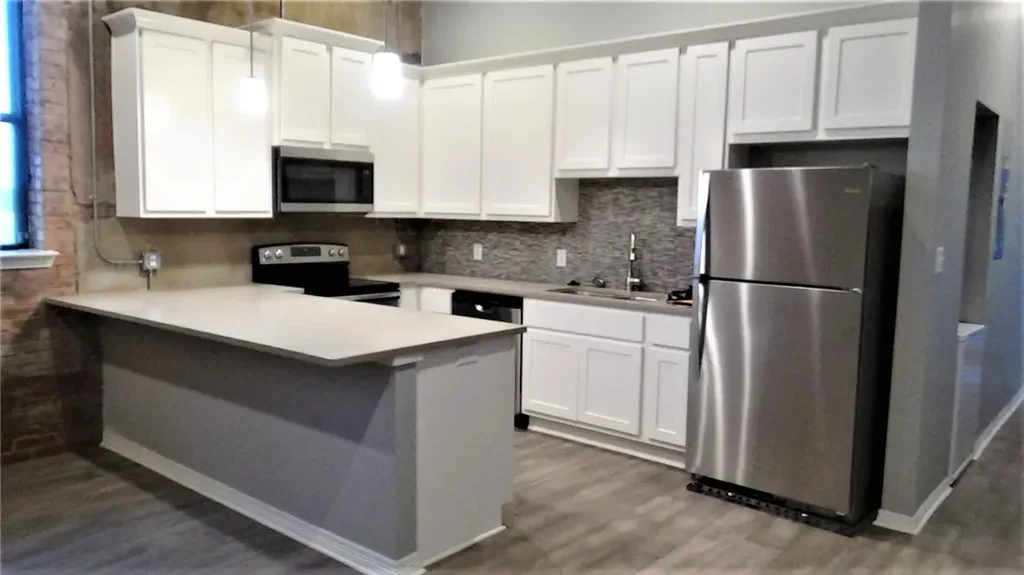 Experience the allure of this exquisite 1-bedroom, 1-bathroom loft nestled within a historically refurbished building in Downtown Bryan. Renovated in 2017, this residence boasts high ceilings, sleek concrete floors, granite countertops, and stainless steel appliances in the kitchen. The owner includes a convenient washer/dryer combination unit. Please note that the building does not accommodate pets. Immerse yourself in the charm of this historic gem with modern amenities.