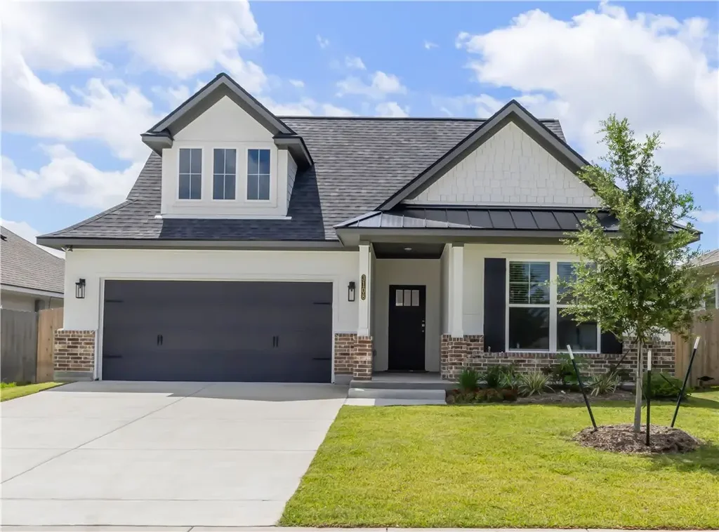Welcome home to 3108 Charge Lane in Bryan's desirable Rudder Pointe! This beautifully crafted, NEW home by Ranger Home Builders features three spacious bedrooms and three full bathrooms, perfect for families or those who love to entertain, PLUS a dedicated home office space or flex room crafted with 8' French doors! The elegant foyer draws you into a sprawling great room featuring the living, dining, and expansive kitchen. With 10-foot ceilings and decorative beams, this home exudes a sense of spaciousness and style. The large kitchen boasts an oversized island, ideal for meal prep or casual gatherings, complemented by soft-close cabinetry and sleek quartz countertops. Enjoy abundant natural light streaming through the oversized windows, accentuating the home's elegant finishes. Outfitted with blinds, LED lighting throughout, and fans in all bedrooms, this home provides year round comfort. The luxury vinyl plank flooring adds both beauty and durability within the common areas + office, making it perfect for everyday living. Don’t miss your chance to make this exceptional home yours! Schedule a showing today and experience the perfect blend of modern living and comfort with a new home from Ranger Home Builders