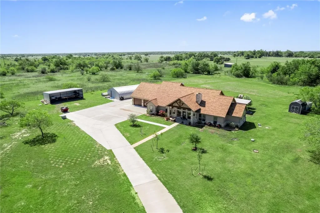 This exceptional rural property, located just 17 miles from Texas A&M University, offers the ideal combination of privacy and convenience. Accessed through a private electronic gate and a charming, tree-lined entrance, this 7.76-acre estate provides a serene escape with plenty of space to grow and enjoy. The property features a spacious concrete driveway with abundant parking, leading to several outbuildings, including a pole barn and a versatile Quonset hut, currently utilized as a gym but easily converted into a large workshop for hobbyists or business owners. Additionally, a small fenced barn is nice for 4H projects or animal care.The home is designed for comfort and functionality, with 5 spacious bedrooms and 4 bathrooms, offering plenty of room for family and guests. The open-concept layout of the kitchen, living, and dining areas creates a warm, inviting space for entertaining or unwinding. The kitchen features lots of counter space, walnut-stained cabinets, large pantry, stainless steel appliances, including gas range, wall oven, built-in microwave and dedicated water line for coffee machine. Other highlights include custom metal exterior doors, a large, oversized garage and a game room, providing ample space for recreation and storage. Recently renovated, this property is move-in ready, offering a peaceful rural lifestyle just minutes from the amenities of Bryan/College Station.