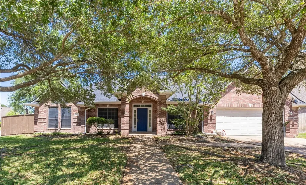 Newly painted 4 bed, 2 bath home located on a corner lot in the Woodcreek subdivision! This house features a split bedroom floor plan, a formal dining room with French doors, and a living room with large windows that let in shaded natural light. The kitchen is well-laid out with ample counter space to work, a double oven, gas range, and brand new microwave. The master suite has private access to the back patio and a spacious bathroom with double vanities, a corner garden tub, and separate shower. The extended covered back patio has a ceiling fan and pull-down shades for that late afternoon sun and privacy. Motivated seller! Come and see this beautiful home for yourself today!