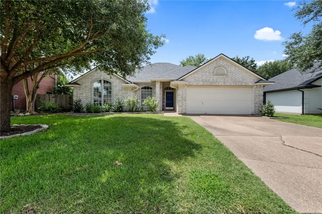 This charming 3-bedroom, 2-bath home in College Station makes a strong first impression — starting with the beautifully crafted custom kitchen cabinetry that sets the tone for thoughtful design throughout the home. Step inside to find updated wood-look flooring, neutral paint, and a bright, open layout filled with natural light. The spacious living room features a cozy fireplace and flows easily into the dining area, where large windows overlook the peaceful backyard. The kitchen is a standout, offering granite countertops, a center island, modern appliances, and those eye-catching custom cabinets — making both daily meals and hosting feel effortless. The split floor plan provides added privacy, with a primary suite that includes a large walk-in closet, soaking tub, separate shower, and dual vanities. Two additional bedrooms and a full bath complete the interior. Out back, enjoy a covered patio, mature shade trees, a storage shed, and a fully fenced yard with plenty of space for pets, play, or relaxing outdoors. This well-cared-for home is conveniently located near schools, parks, and shopping — and it's ready for its next owner to move right in.