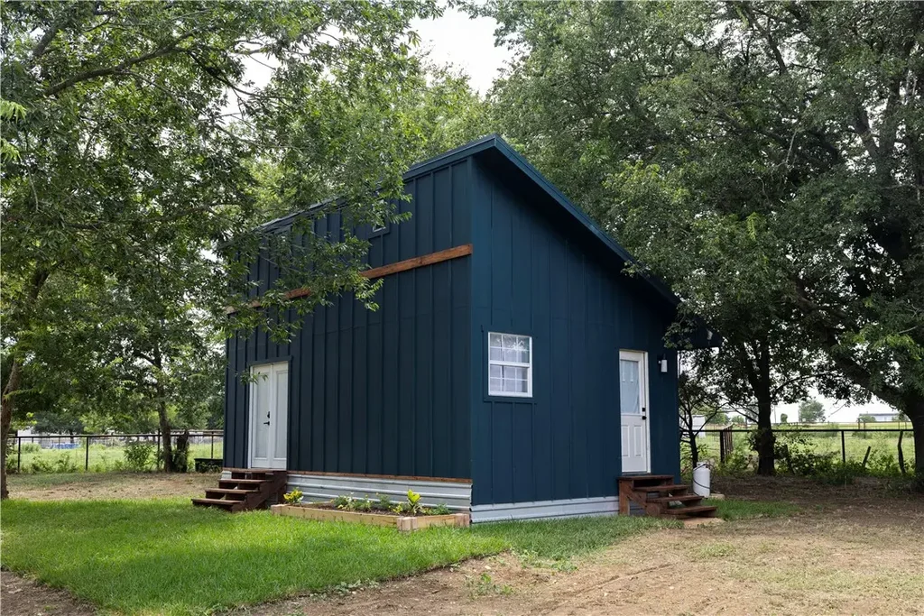 Charming Efficiency Tiny Home on close to an acre - Your Cozy Retreat Awaits! Discover comfort and style in this beautifully remodeled 384 sq ft efficiency cottage, perfect for those seeking a simplified lifestyle. Nestled in a serene setting on a private non-restricted .93 acre lot with mature trees. This home offers what you need with thoughtful upgrades throughout. Step inside to an open and airy living space accentuated by vaulted ceilings and brand-new flooring that flows seamlessly throughout. The full kitchen features a modern farmhouse stainless sink, gas stove/oven, and refrigerator – ready for your gourmet creations. Unwind in the newly remodeled bathroom with spacious walk-in tile shower complete with a unique and soothing white/gray river rock bottom. Cozy up on cooler evenings beside the inviting wood-burning fireplace, adding a touch of rustic charm to your home. For year-round comfort, the cottage is equipped with efficient mini split A/C and heat. This charming cottage is more than just a home; it's a lifestyle. Don't miss your chance to own this turn-key gem for your own simple life or your next investment/rental property. Easy access to Hwy 21, approximately one hour to Austin, 35 minutes to Bryan/College Station, 30 minutes to Bastrop/Elgin. Reach out for a tour today.