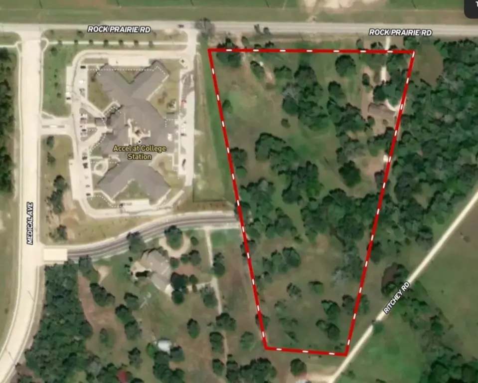 This tract is an ideal location, almost adjacent to the Baylor Scott and White Hospital campus, with Accel Rehabilitation and Midtown City Center on its borders. The frontage on Rock Prairie has recently been widened to a 4-lane boulevard with large sidewalks connecting into the hospital campus. All needed accessory uses are in very close proximity, which include grocery, medical, retail, restaurant, and convenience stores. The property is currently zoned Ag, but we believe the potential entitlements include medical, office, general commercial, or multifamily.(to be negotiated with the city) Utilities are available.