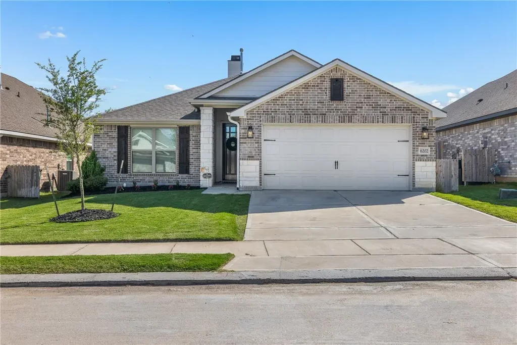 Brand new roof! A true standout in both style and construction, this beautifully crafted 4 bedroom, 2 bath home offers a harmonious blend of elevated design and exceptional quality. Built in 2022 by Kaleo Homes, it stands out with full brick exterior on all four sides, no carpet throughout, and a split floor plan that thoughtfully places the primary suite away from the other bedrooms. The open-concept living area is anchored by a gas fireplace, creating a warm and inviting space to the kitchen island and dining area ideal for both quiet evenings and entertaining. Just beyond, the extended covered patio invites outdoor living, complete with a dedicated natural gas line for hosting gatherings with ease. Additional highlights include a tankless water heater, Ethernet drops in each room, and pre-wired security system. Southern Pointe residents enjoy a suite of amenities including a resort-style pool, sport courts, dog parks, and walking trails, all just minutes from Highway 6 providing easy access to all College Station has to offer. Book a tour today!