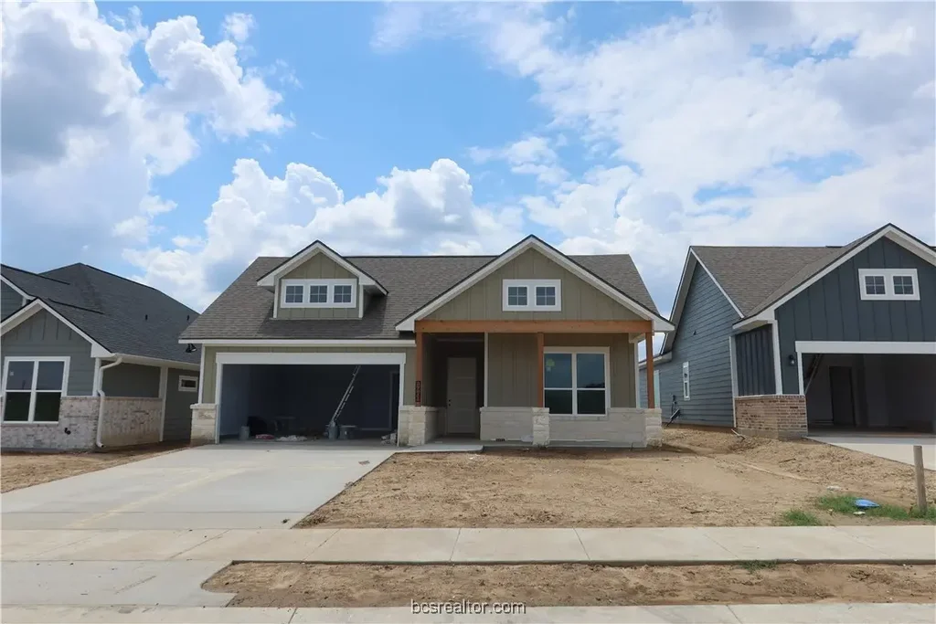 Beautifully and brand new crafted 3-bedroom, 2-bath home nestled in the desirable Gourd Creek community, right next to the sought-after Edgewater neighborhood in Bryan. Designed with style and functionality in mind, this home offers an inviting open-concept floor plan with soaring ceilings that flow seamlessly from the entry through the main living areas. At the heart of the home, the gourmet kitchen is a showstopper, featuring quartz countertops, a large center island, built-in microwave, dishwasher, freestanding electric range, and contemporary light fixtures. Ample natural light, split floor plan with a spacious primary suite complete with a pop-up ceiling, oversized walk-in closet, and a spa-like en-suite bath. Relax in the deep soaking tub, enjoy the double vanities, or refresh in the tiled walk-in shower with sliding glass door. Quality finishes include durable luxury vinyl plank flooring throughout the main living areas and stylish tile in all wet spaces. Thoughtful touches like 8-foot front and back doors elevate both the curb appeal and interior atmosphere. This energy-efficient home is equipped with a 16 SEER2 HVAC system, archtectural shingles and rain gutters on all sides. Step outside to your fully fenced and landscaped backyard, complete with a full-yard irrigation system, perfect for relaxing or entertaining. New washer, dryer, and refrigerator will be installed upon moving in.