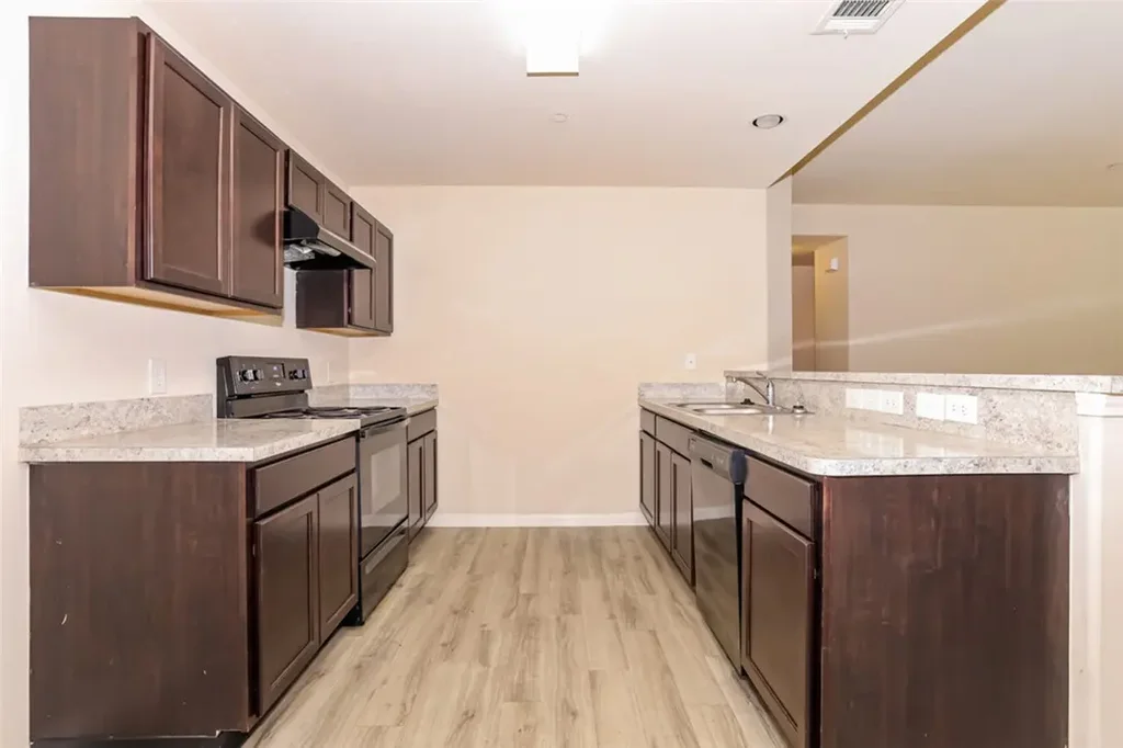 The Wellborn is a thoughtfully designed one-story home offering 3 bedrooms and 2 bathrooms. The layout features an open-concept kitchen, dining, and family room that creates a spacious common area for gatherings. All bedrooms are located toward the back of the home, providing added privacy, and each includes generous closet space. The primary suite features a walk-in closet and full bath with dual vanities. Additional highlights include a dedicated utility room and entryway storage. Features include wood-grain vinyl plank flooring, a two-car attached garage, fenced backyard, and sprinkler system. All homes are SimplyMaintained for a $100 monthly fee that includes front and back yard lawn care and exterior pest control.