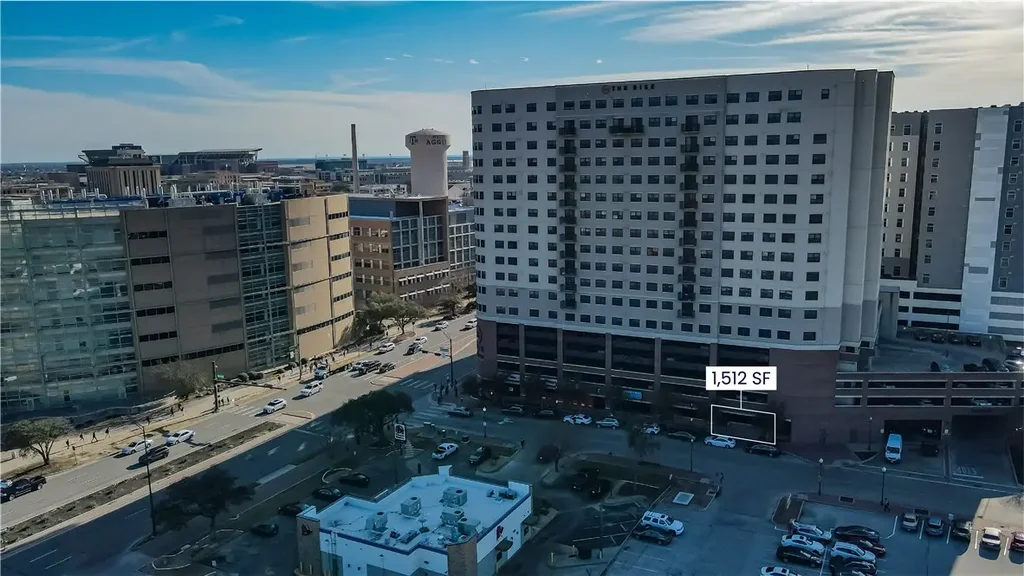 1,512 sq ft prime retail space available for lease. Boasting a strategic ground-level position within The Rise housing complex, this storefront space is situated across from Texas A&M University, ensuring heavy foot traffic. High traffic count flow with over 40,000 VPD on University Drive. • Prime Ground-Level Position Within The Rise Complex (474 Beds) • Situated Across University Drive From Texas A&M University • First Floor Retail with Excellent Visibility & Heavy Foot Traffic • Ample Space That Provides Flexibility For A Variety of Tenants • Access From University Drive (40,000 VPD) & Church Street • Current Tenants: CVS, Shun De Mom, & Nautical Bowls (coming soon)