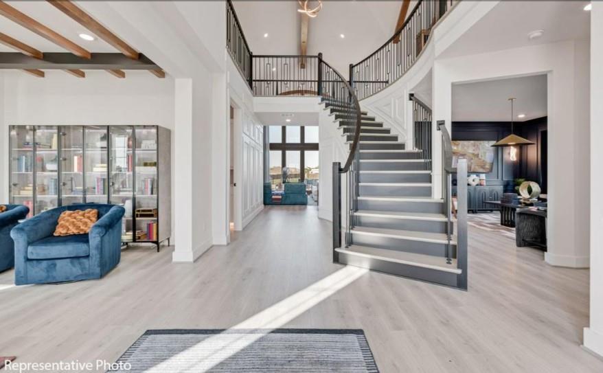 Welcome to this stunning new construction home - Riverside plan - in Grand Estates of Anna with No MUD & No PID, with completion scheduled for November. Nestled in a quiet community yet close to city conveniences, this thoughtfully designed residence offers 4 spacious bedrooms, a 3-car garage, and a lifestyle that blends comfort with elegance. A light brick and stone exterior pairs beautifully with modern double front doors, opening to a dramatic entryway featuring a curved full oak staircase that immediately sets a tone of sophistication. With four expansive living areas, there’s room for everyone—enjoy a private home office or den, a family room with soaring vaulted ceilings & a sleek 50-inch linear fireplace with floor-to-ceiling dry stack stone, a downstairs media room, and an upstairs game room perfect for kids or entertaining. The open-concept kitchen is a chef’s dream, showcasing a large island with pendant lighting, light slab countertops, Shaker-style cabinetry, stainless steel appliances, a five-burner gas cooktop with a custom wood vent hood, double pantries, pots & pans drawers, a large single-bowl sink, trash can drawer, & a stylish picket tile backsplash. The luxurious primary suite includes double vanities, his-and-hers walk-in closets, a spacious walk-in shower, mirrors to the ceiling, & convenient access to the laundry room. A downstairs guest suite offers flexibility for visitors. Custom details throughout include 8-foot interior doors with modern lever hardware, matte black fixtures, durable wood-look flooring for modern durability, & tall 6-inch baseboards. Enjoy outdoor living with a large covered back patio, ideal for grilling or relaxing. Energy Star certification ensures long-term efficiency—ask the sales representative for performance details. This is more than a home—it’s a lifestyle.