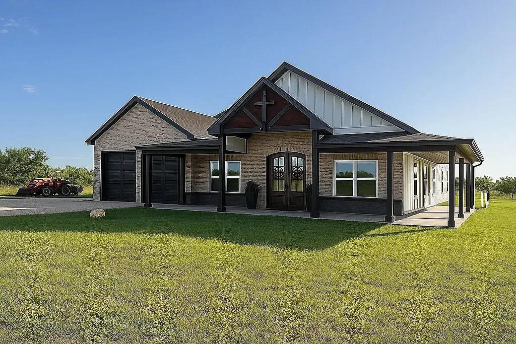 Welcome to your dream country retreat! Nestled on over 10 acres of beautiful land, this spacious and thoughtfully designed home offers the perfect blend of comfort, functionality, and room to roam. Enjoy peaceful mornings and relaxing evenings from the large covered front and back porches, ideal for sipping coffee or entertaining guests. Step inside to a bright and open floor plan that offers seamless flow and flexibility for everyday living. The main living area features a stunning floor-to-ceiling brick fireplace—an eye-catching focal point that adds warmth and charm. The kitchen is a chef’s dream with ample cabinet and counter space, a generous walk-in corner pantry, and a layout that opens up to the rest of the home for easy entertaining. The second living space at the back of the house offers endless possibilities—perfect as a playroom, creative studio, reading nook, or home office. Just off this space is a cozy loft area that provides added privacy or can be used as a bonus room. The primary suite is spacious and serene, with a large ensuite bathroom featuring dual sinks, an oversized vanity, a walk-in shower, and a generous walk-in closet. Each of the three guest bedrooms is comfortably sized, and the guest bathroom includes dual sinks for added convenience. Polished concrete floors run throughout the home, offering durability and low-maintenance living. The large laundry area has space for a washer, dryer, extra freezer, and all your storage needs. Outside, there’s more than enough room for all your outdoor toys and hobbies. The oversized garage features extra-tall garage doors—perfect for larger vehicles or equipment. When the weather warms up, cool off in the above-ground pool and enjoy everything this expansive property has to offer.