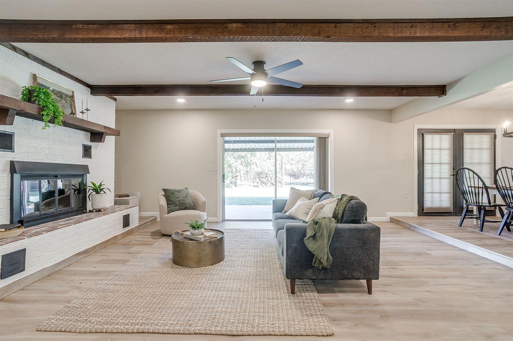 Step into this beautifully updated modern ranch-style home, where classic charm meets contemporary comfort. Fresh paint, new flooring, and updated fixtures create a welcoming atmosphere throughout. The spacious living room features a striking fireplace framed by built-in shelving and accented with rustic wood beams — the perfect centerpiece for gatherings or cozy nights in. The kitchen has been stylishly enhanced with a cabinet-to-ceiling backsplash, sleek new countertops, and modern appliances, offering both function and flair. The large master suite provides plenty of room to unwind, while the versatile bonus room can serve as a formal dining area, office, or playroom — tailored to your lifestyle. Outside, enjoy a generous fenced backyard complete with a covered porch, storage space, and a lovely garden area — ideal for entertaining or quiet evenings outdoors. Roof replaced in October of 2025, BRAND NEW!